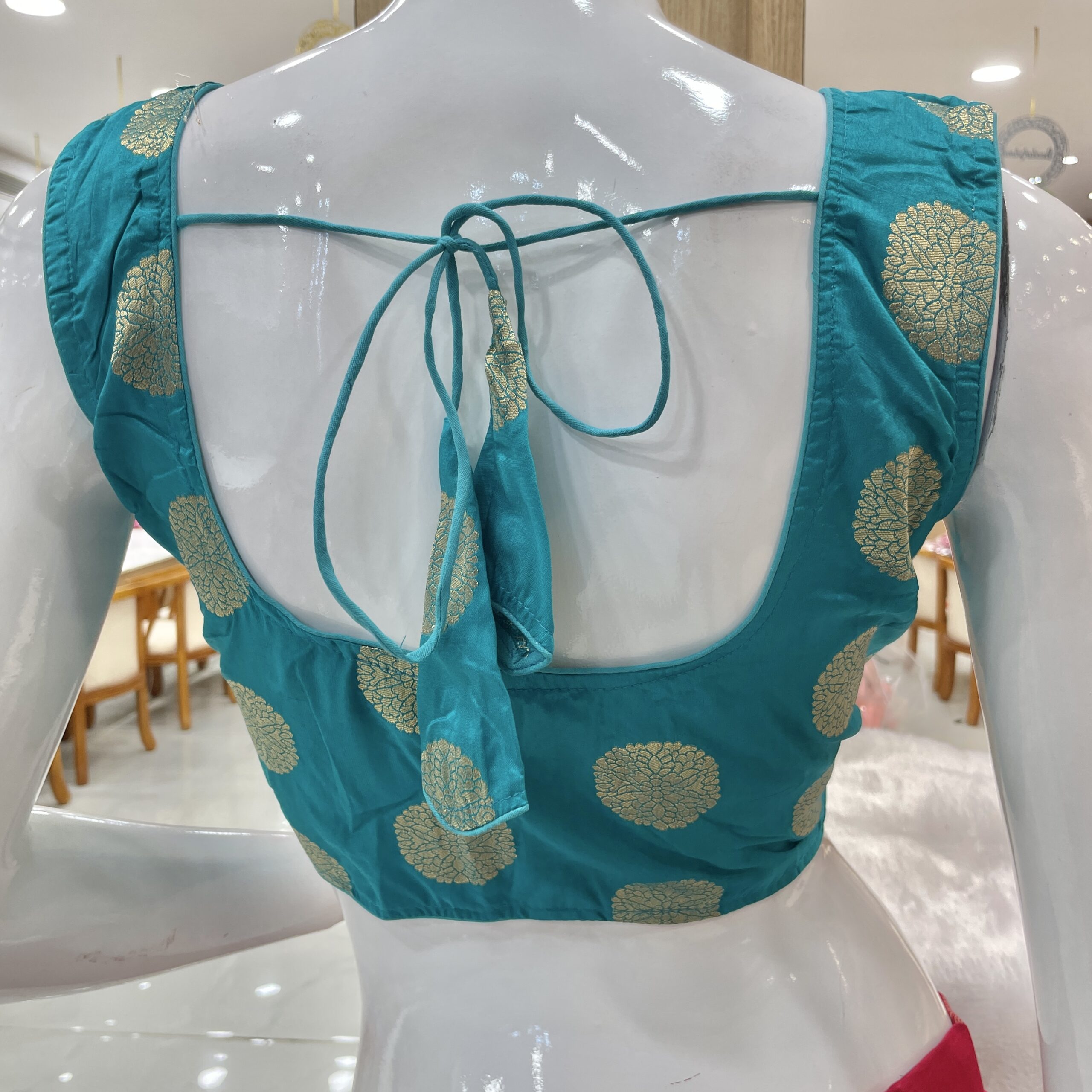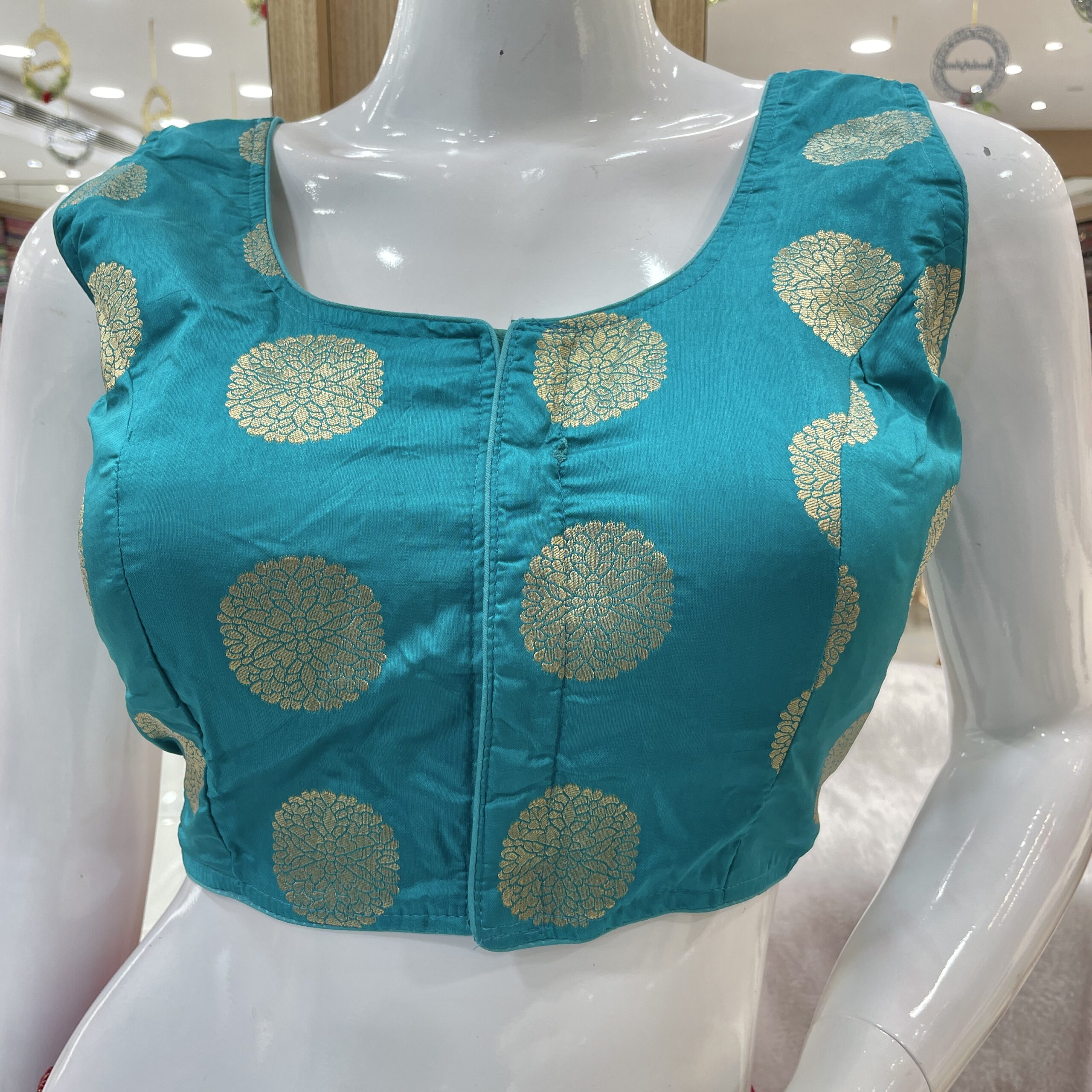 Fancy Blouse With Golden Woven Motifs.